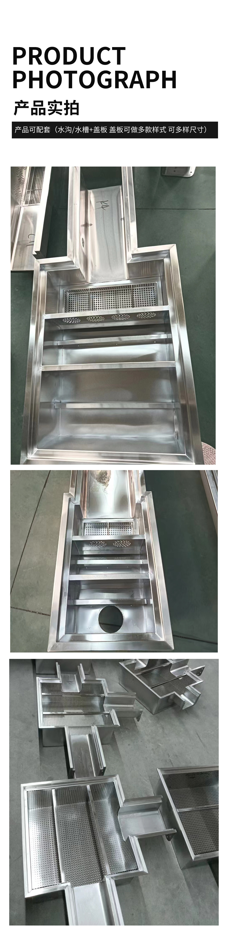 选用优质不锈钢材质,防腐耐用,好清洁,可连接成品排水沟。